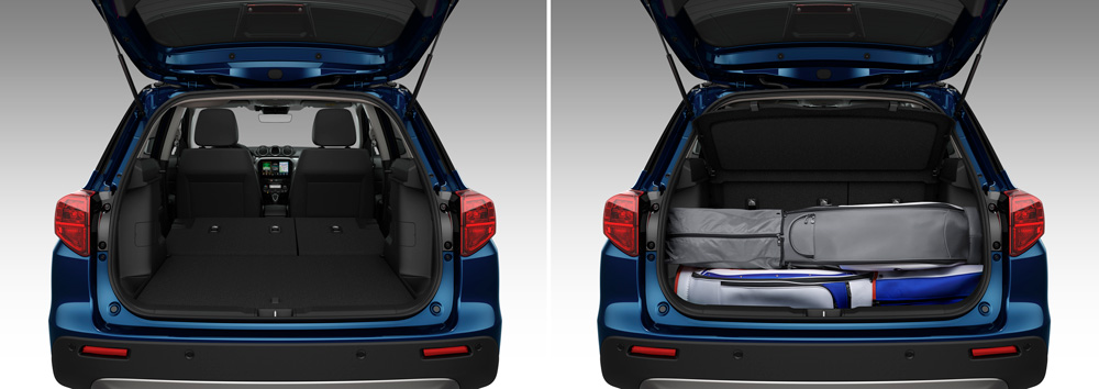 Suzuki Vitara ir ne vien praktiskāks, bet, pateicoties jaunam aizmugures spoilerim, arī izskatās sportiskāk. Tas palīdz samazināt gaisa pretestību un mazina netīrumu un sniega uzkrāšanos uz aizmugures loga.