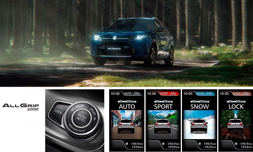 Vitara prot sagādāt prieku daudzos veidos un ļauj izbaudīt brīvību uz jebkāda seguma. Vitara AllGrip Select pilnpiedziņas sistēma piedāvā dažādus režīmus, bet pilna un daļēja hibrīda versijas ļauj izbaudīt hibrīda degvielas ekonomijas priekšrocības un paātrinājumu.